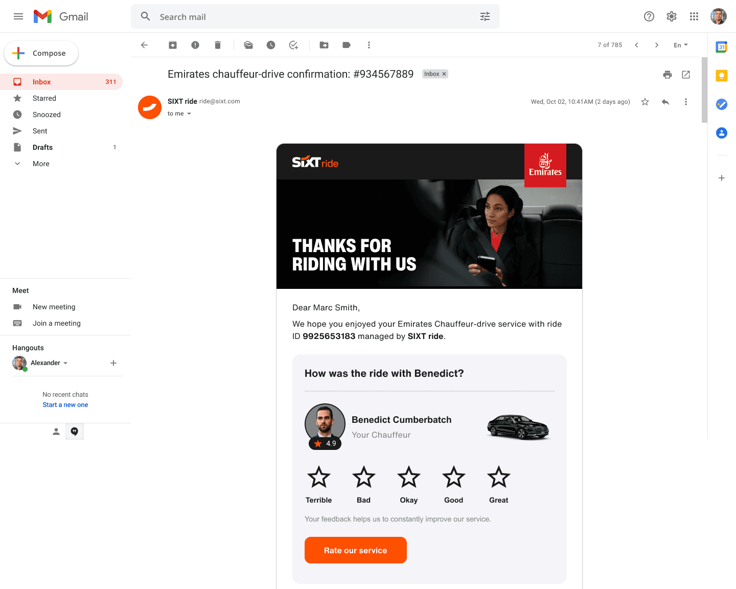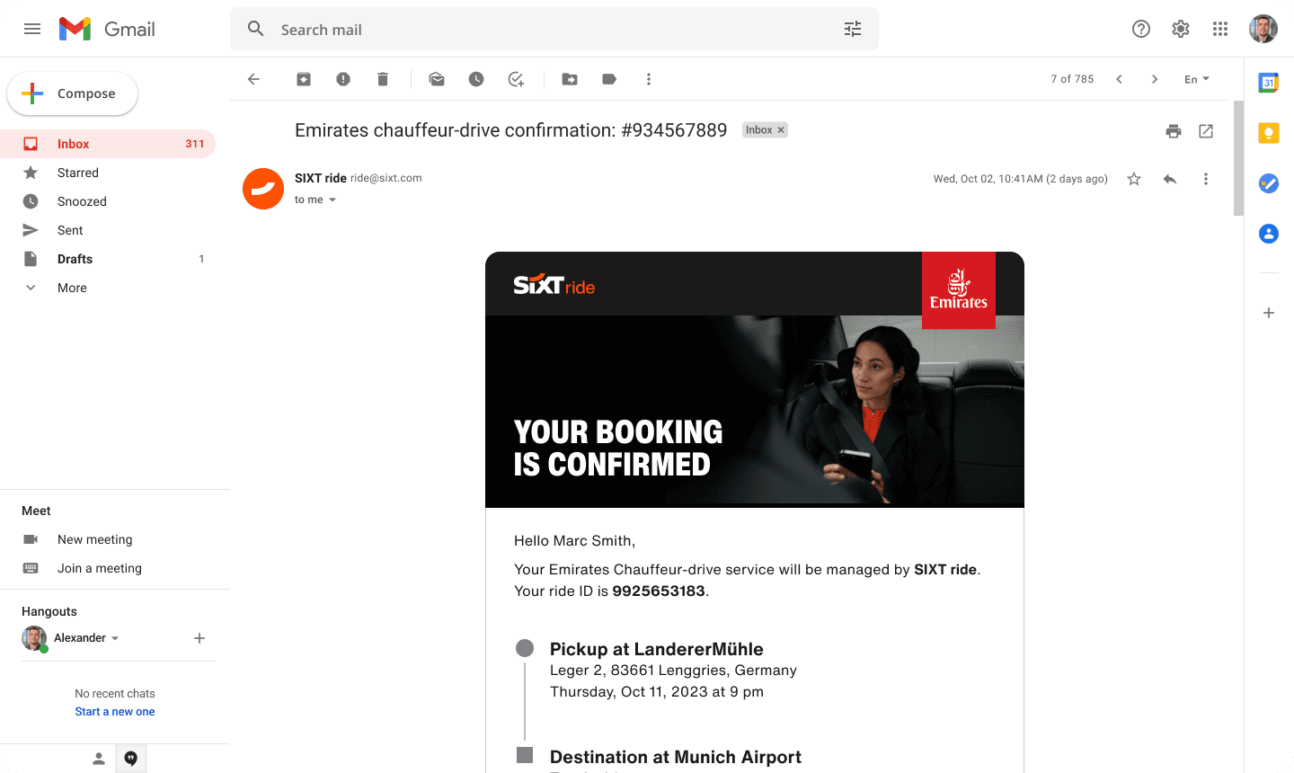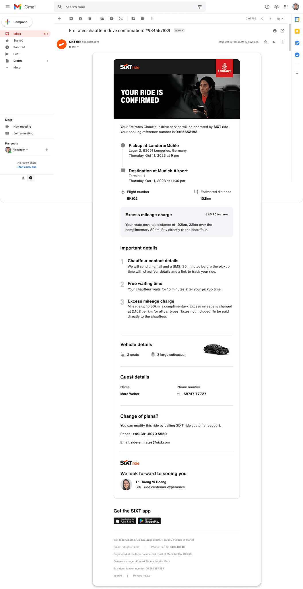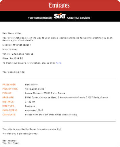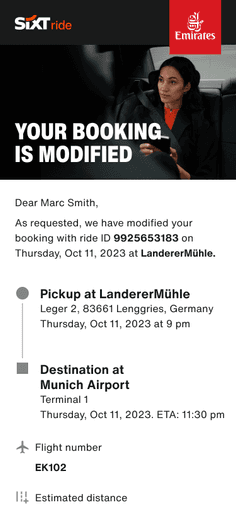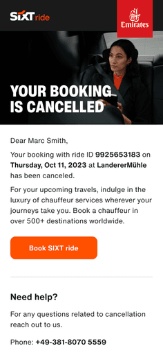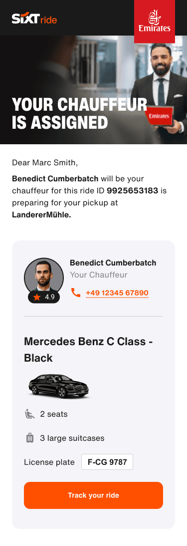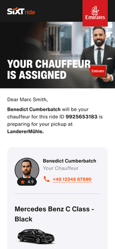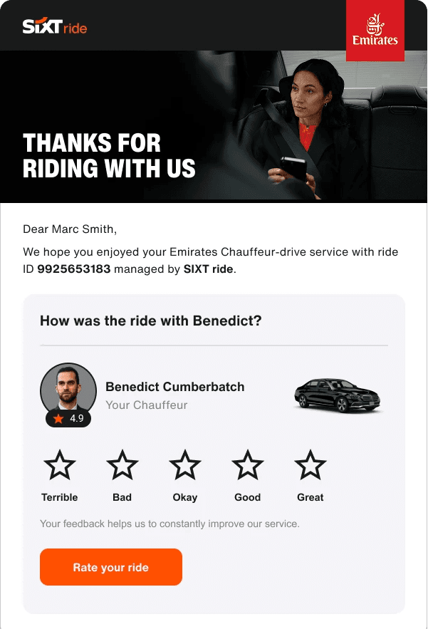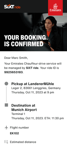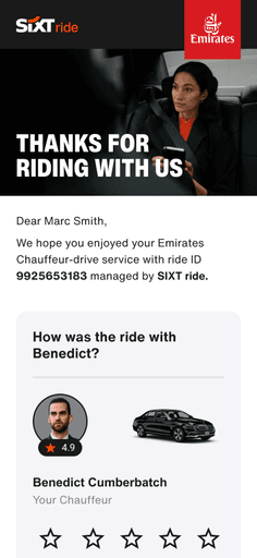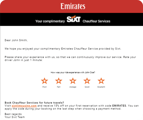 Mirror the brand’s prestige – Align every email with the luxury standards of SIXT Ride and Emirates.
